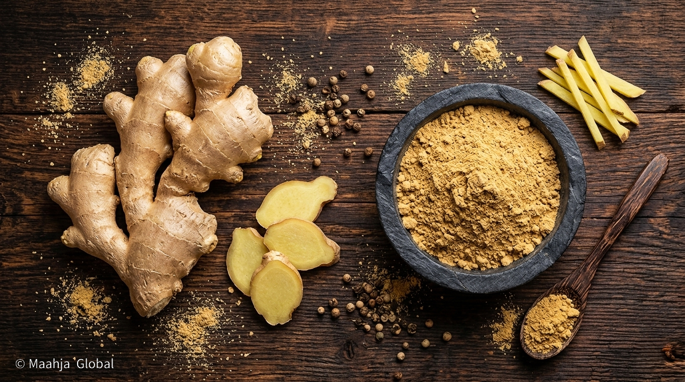 Available in multiple forms including fresh ginger, dry ginger, crushed ginger, and finely milled ginger powder, Indian ginger is widely used in the food, beverage, nutraceutical, and pharmaceutical industries. Its consistent quality, natural flavour, and adaptability across various applications make it a preferred choice for importers seeking premium-grade ginger from India.