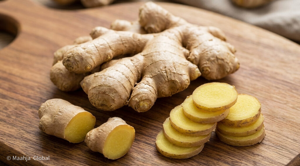 Indian ginger is one of the country’s most valued spice exports, widely recognized for its strong aroma, characteristic pungency, and high essential oil content. Known for its fresh flavour and versatile applications, Indian ginger is cultivated across several regions and is appreciated globally for its quality and natural richness. The rhizomes typically feature light brown skin with pale yellow flesh and are valued for their culinary and medicinal properties.